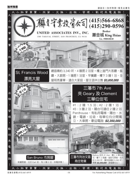 = = = = (415) 661-6919 -18- For Advertising Please Call (415) 661-6919