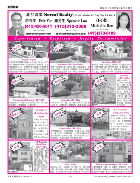 = = = = (415) 661-6919 -20- For Advertising Please Call (415) 661-6919