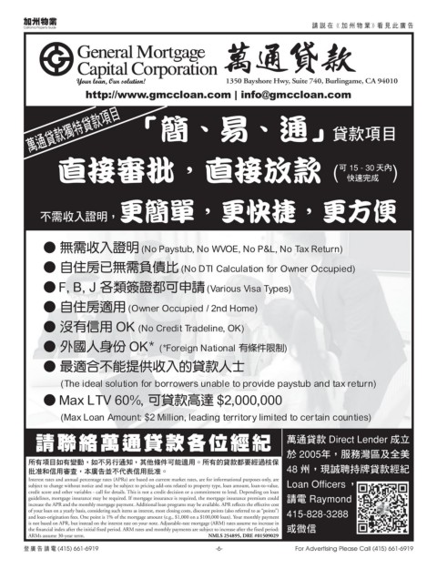 = = = = (415) 661-6919 -6- For Advertising Please Call (415) 661-6919